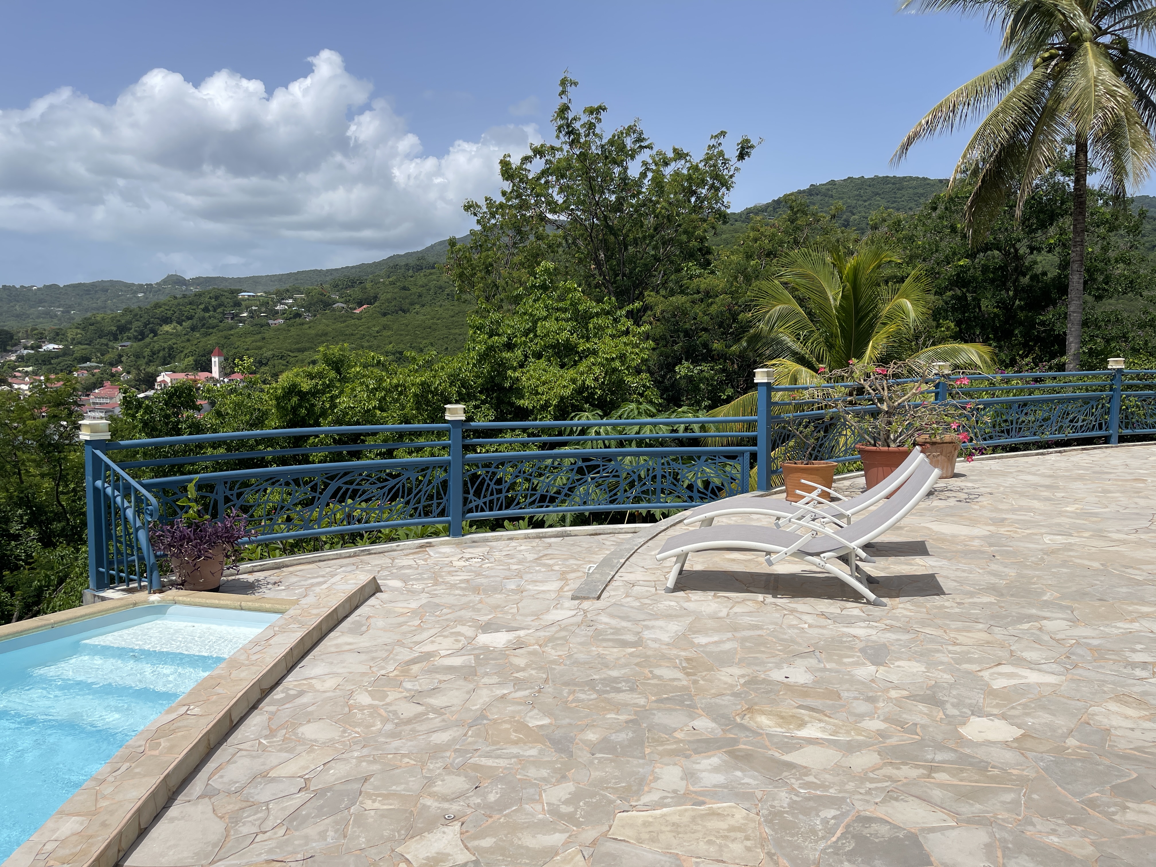 La Villa Belle Sirène est une maison située en Guadeloupe dans la commune de Deshaies. Cette demeure touristique offre une superbe vue sur la baie de Deshaies et propose un service haut de gamme. La décoration de qualité fait partie de la particularité de ce bien à louer. Un de mes tableaux que j’avais rangés soigneusement dans mon atelier a été remarqué et a été choisi pour être exposé dans une des belles chambres (celle avec le lit à colonnes) de la villa ! Youpi ! 😜