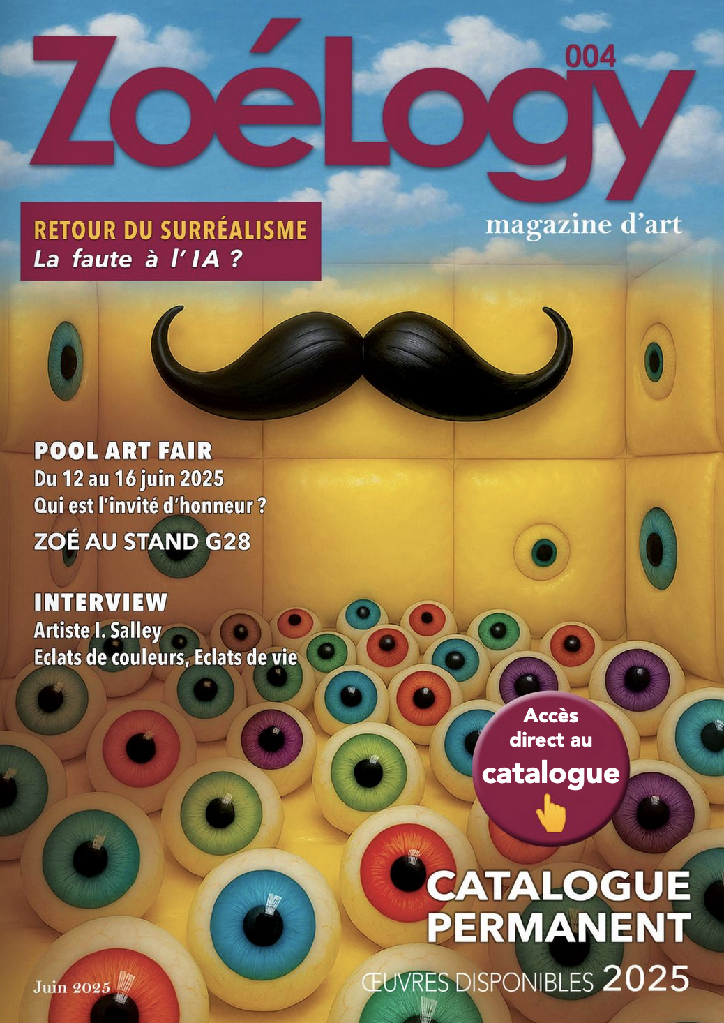 🖼️ « Ode à l’oubli », une toile toute en intériorité, analysée dans une critique signée Pauline Brissac. 🌀 Retour du surréalisme : un dossier qui interroge notre époque… et ses dérives. 🎨 La Pool Art Fair 2025 : focus sur le créateur de cette foire internationale et sur l’invité d’honneur. 🧠 L’IA, amie ou ennemie de la création ? Une réflexion tout en nuances. 👩🎨 Irène Salley, artiste flamboyante, vous ouvre les portes de son univers dans un portrait intime et une interview vivante. 🎨 Le catalogue complet des œuvres exposées, mis à jour aujourd’hui, pour vous permettre de (re)découvrir toutes les toiles présentées sur mon stand.