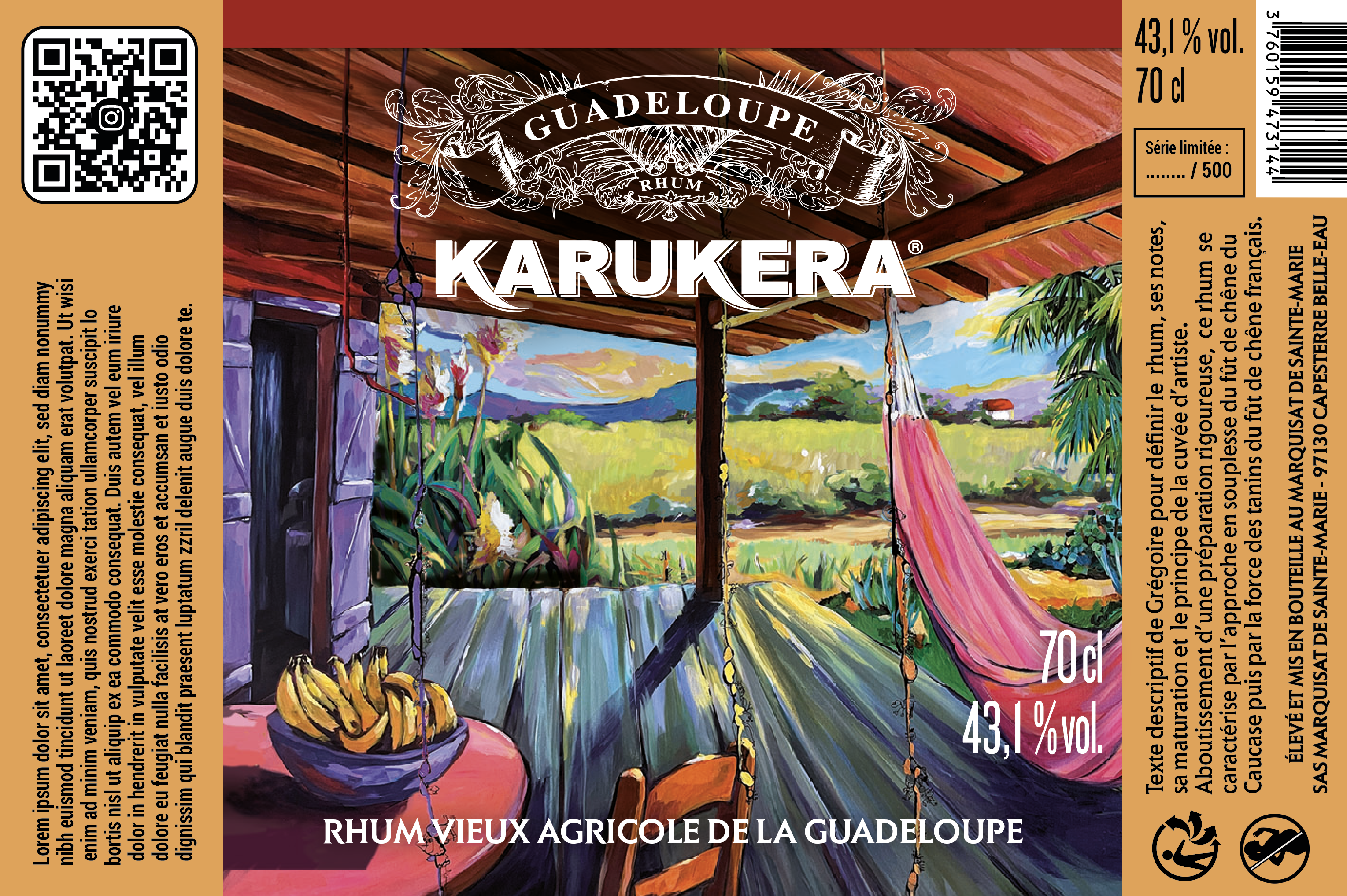 À la demande des Rhums KARUKERA®, j’ai composé une scène de carbet ouverte sur les champs de canne : couleurs vibrantes, ombres du bois chauffé au soleil, lenteur des après-midi caraïbes. Une ode au rythme de la Guadeloupe.