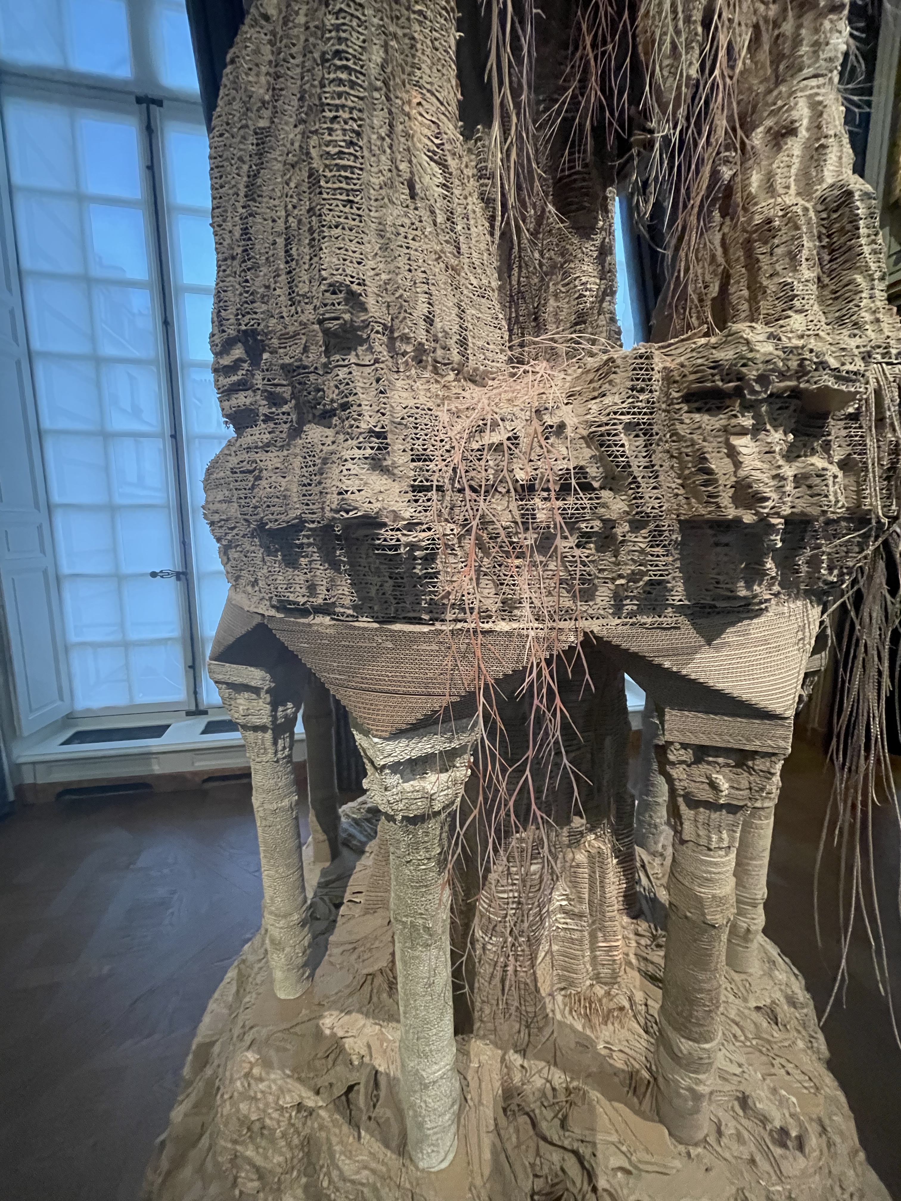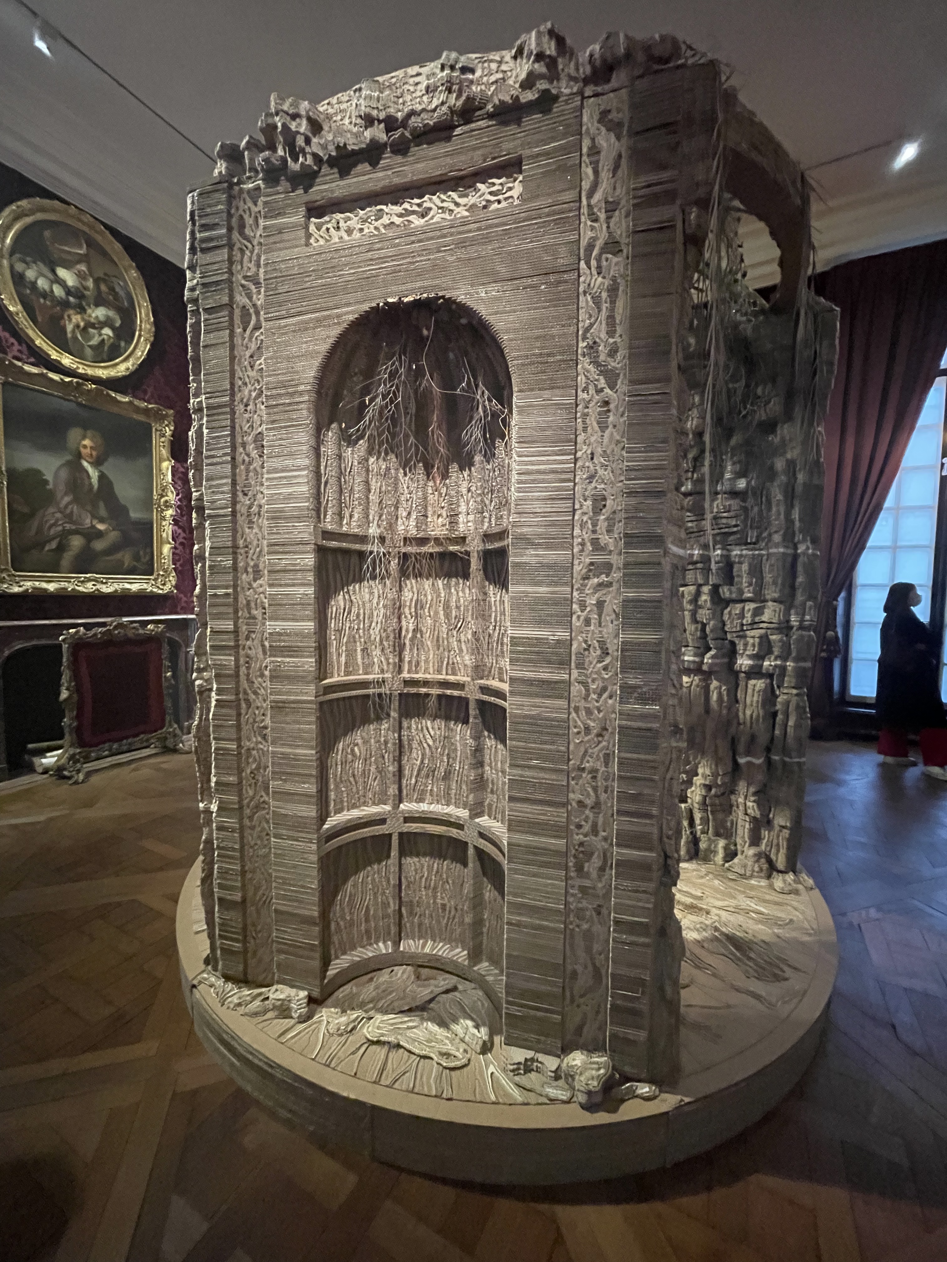 C’est avec grande curiosité que je me suis rendu avec Monsieur Zoé au Musée de la chasse et de la nature à Paris. (https://www.chassenature.org/) Que les choses soient claires : mon truc, ce n’est pas les animaux empaillés ! Nous y sommes allés pour admirer l’exposition d’Eva Jospin. (oui, oui, il s’agit de sa fille). J’avais entendu parler de son travail à la télé et dans divers magazines d’art. Je n’est pas été déçue. Eva Jospin travaille le carton et le papier comme d’autres, la pierre. C’est impressionnant de se retrouver dans ce monde de papier. Chaque sculpture représente un univers féérique : une forêt, un chalet dans une montagne, un cirque grec… on y voit ce que l’on veut ; c’est ça, l’art. En tout cas « thumbs up » pour Eva Jospin.
